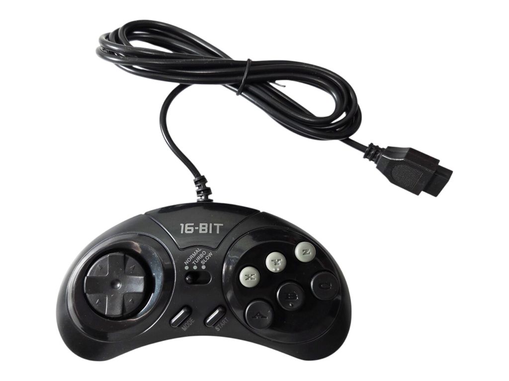 Controle alternativo de 6 botões (cabo 1,50m) incluido o botão mode, com função turbo e slow, para Mega Drive. Compatível com master system.