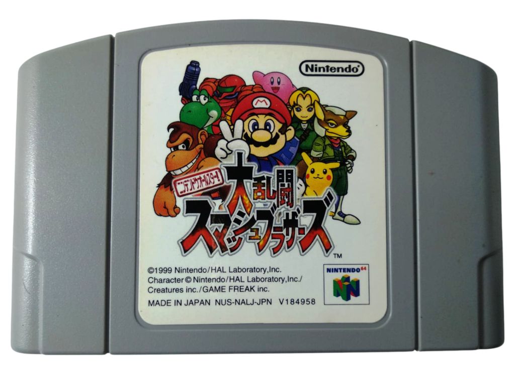 Jogo original japonês Super Smash Bros para Nintendo 64. Para o funcionamento em console americano ou nacional é necessário a remoção da trava plástica. Cartucho será enviado conforme fotos, caso tenha interesse (entre em contato após a compra) podemos remover a trava plástica.
